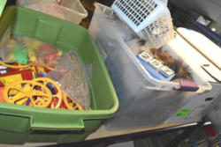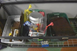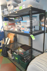 Shelf lot of simple machines and animal fur, Mirror Magic supplies