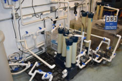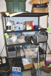 Shelf contents consisting of Chlorine Neutralizer, pumps, filters, etc.