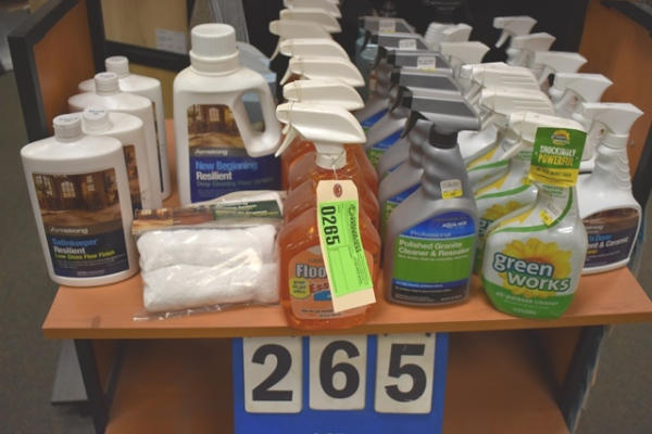 Shelf lot of floor cleaner, polish granite cleaner and resealer