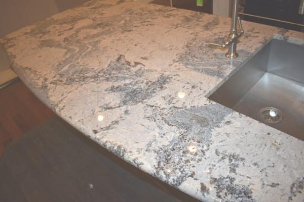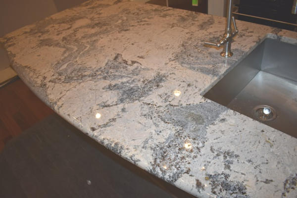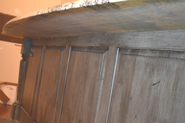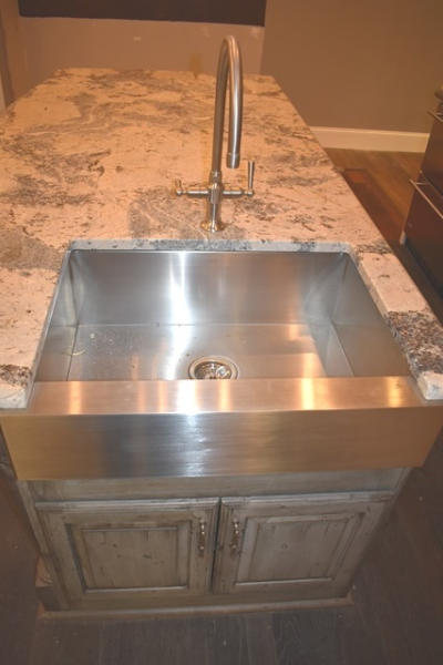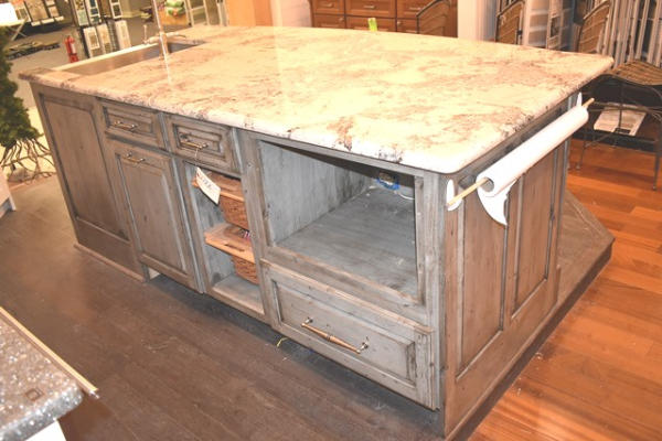 Island with sink, approx. 47" at widest point, overall length is approx. 90"