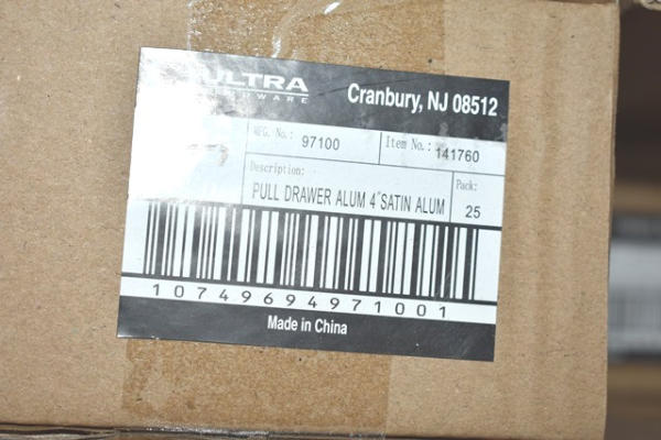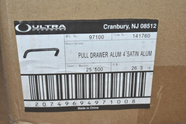 Case of Ultra Drawer Pull, aluminum 4" satin aluminum, 25 to a box, 20 boxes to a case