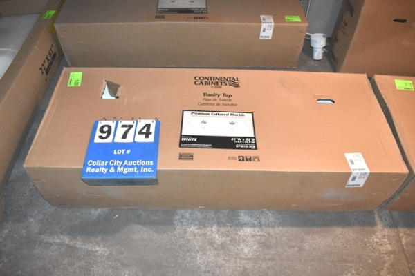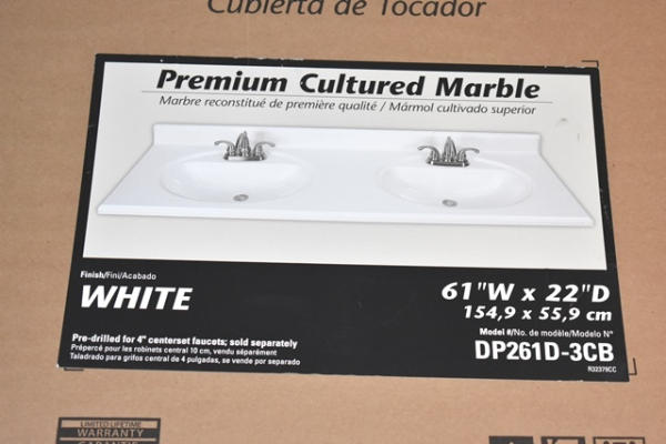 Premium cultured marble vanity top, 61" wide x 22" deep