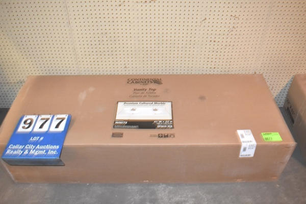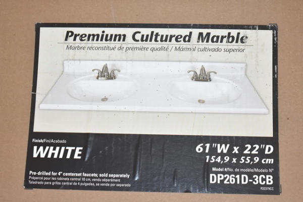 Premium cultured marble vanity top, 61" wide x 22" deep