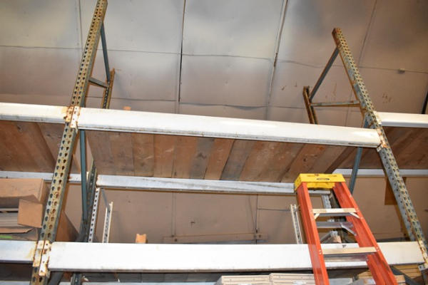 Large row of pallet racking, 12 uprights, assorted cross braces (CANNOT BE REMOVED UNTIL THE FINAL DAY OF REMOVAL)