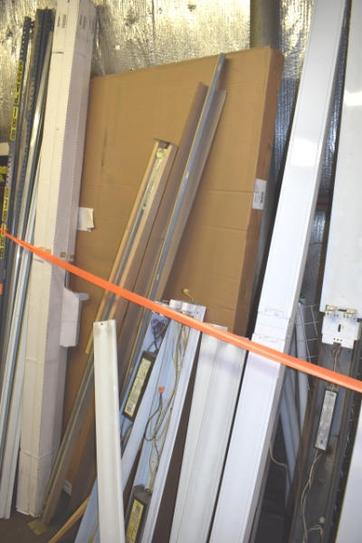 Large lot of side light panels, threshold, door frame, florescent lights, etc.
