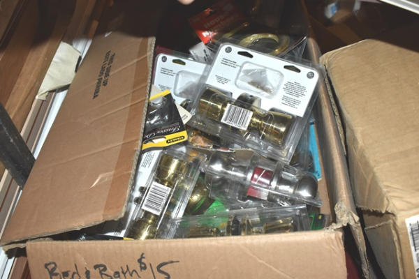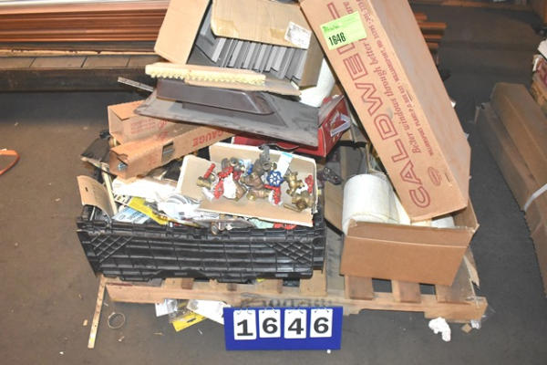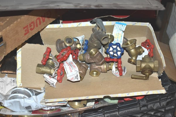 Pallet lot including copper valves, door knobs, etc.