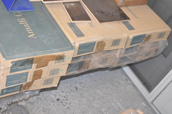 Lot of 9 cases of Bella Cera Almalfi Maple Cetera, approx. 41 sq ft per box