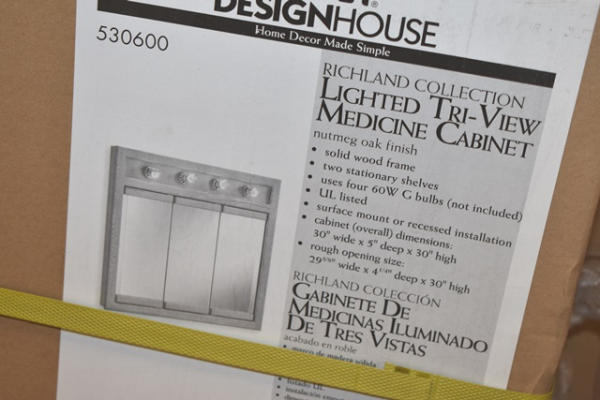 Lot of 2 lighted tri-view medicine cabinets, 29 5/8" wide x 4 1/4" deep x 30" high