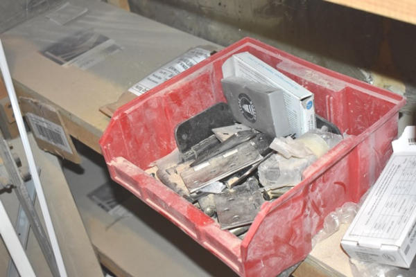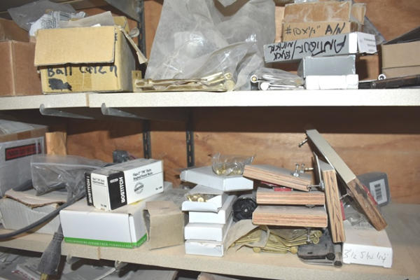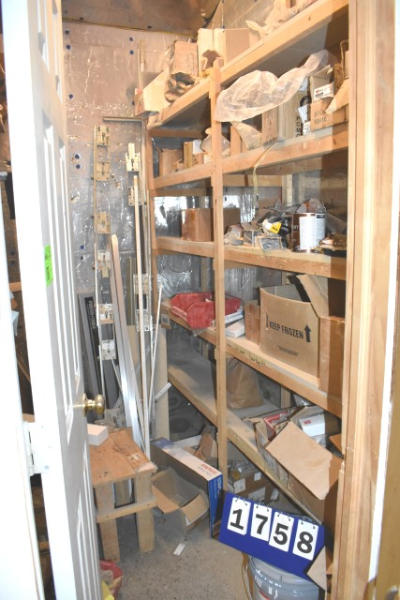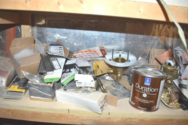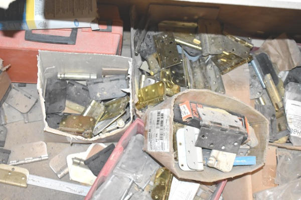 Closet contents consisting of copper fittings, faucet parts, hinges, etc.