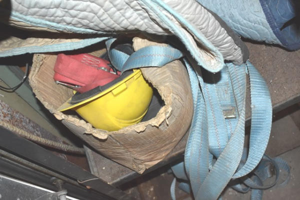 AV cart with contents consisting of radio, e-track straps, blankets, etc.