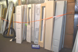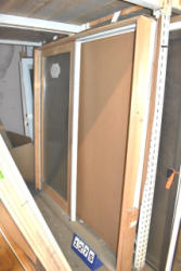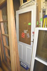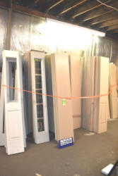 Large lot of door slabs, storm door parts, storm door displays, etc.