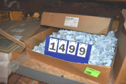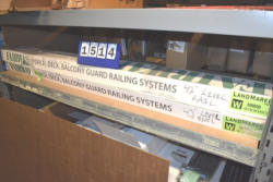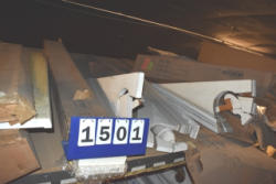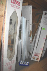 Contents of shelf including post trim ring, window blinds, etc.