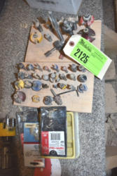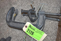 Shelving unit with contents consisting of wire, c-clamps, etc.