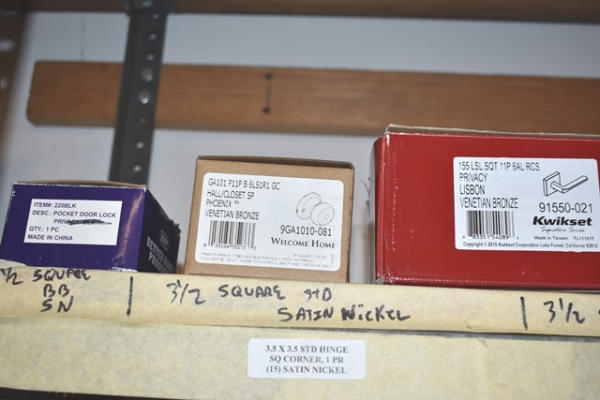 Shelf lot including pocket door lock, hall and closet knobs, privacy levers, etc.