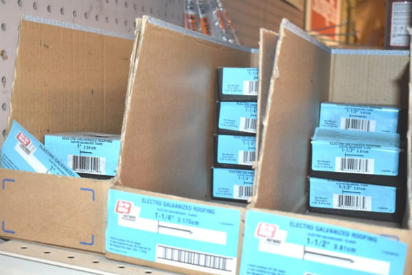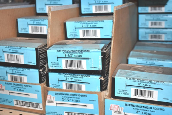 Shelf lot of roofing nails