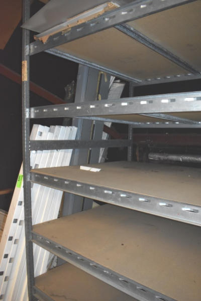 Metal shelving unit, approx. 16' long (CANNOT BE REMOVED UNTIL THE LAST DAY OF REMOVAL)