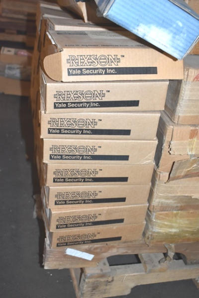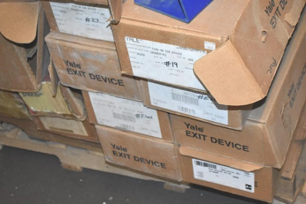 Pallet lot of Yale exit devices and Yale security magnetic door holders