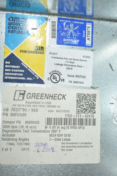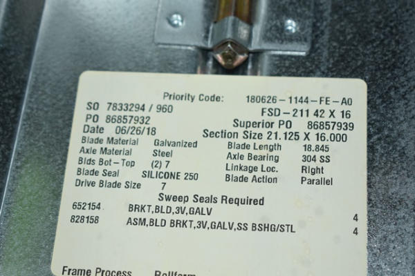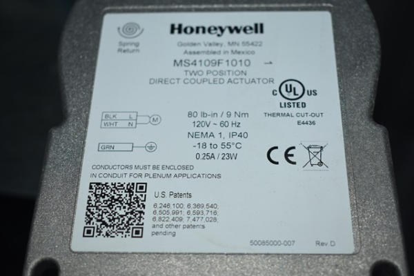 Damper assembly, 40" x 16" with a Honeywell 2-position direct cup bolt actuator on it