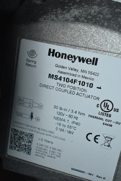 Fire smoke damper, 12" x 12" with Honeywell 2-position direct coupled actuators