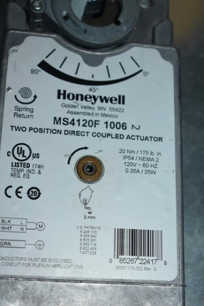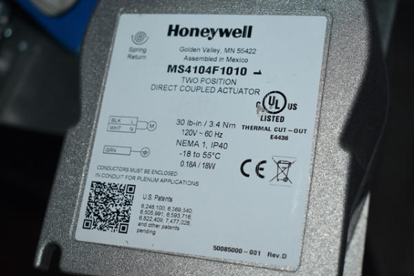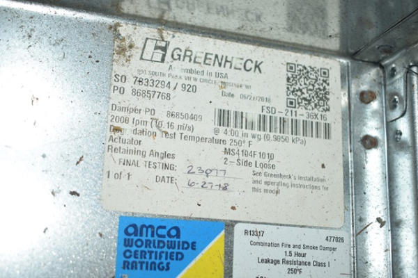 Smoke and fire damper, 36" x 16" with a Honeywell actuator