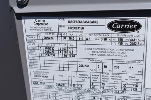 Carrier 5-ton roof top unit, gas fired, heat & cool