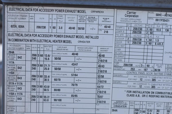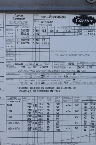 Carrier roof top unit, 7 1/2 ton, heat & cool