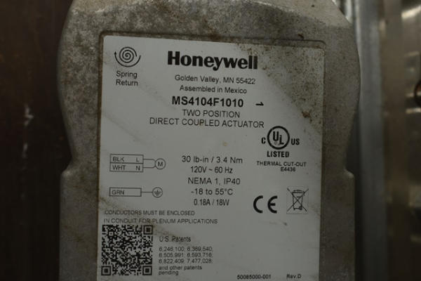 Fire smoke damper, 24" x 20" with a Honeywell actuator