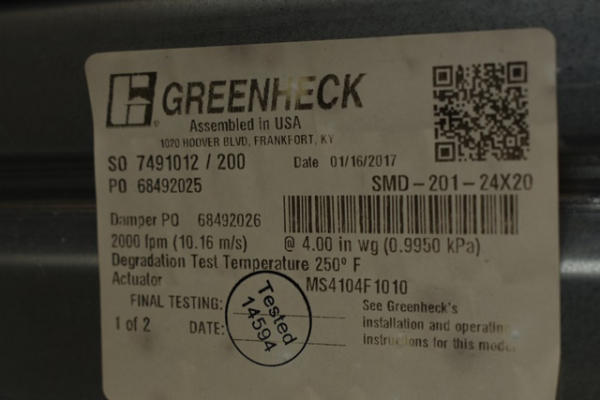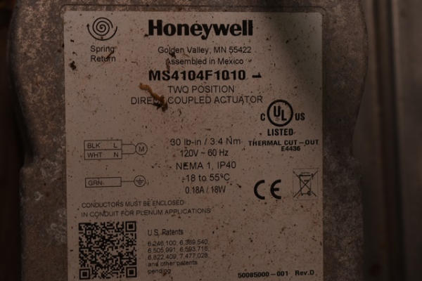 Smoke and fire damper with a Honeywell actuator, 24" x 20"