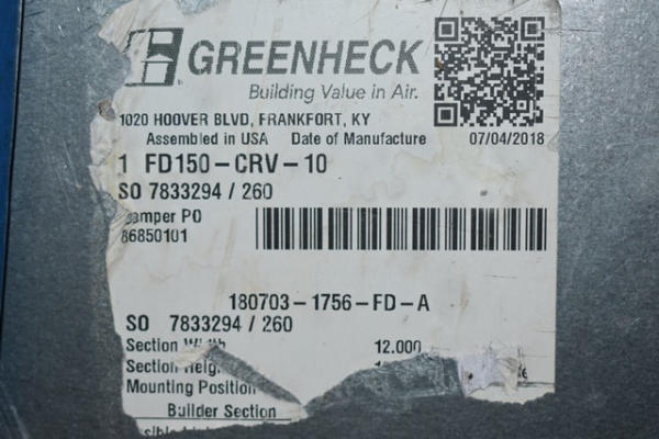 Fire damper, Class C, 10" round connection