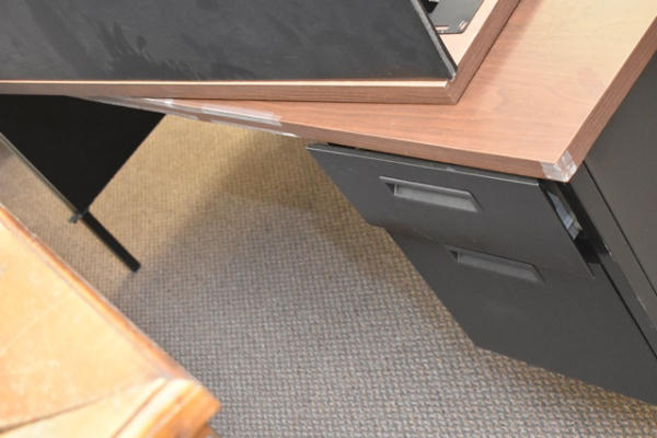 L-shaped desk, approx. 66" x 30" for 1 side, 42" x 24" for other side (partially disassembled)