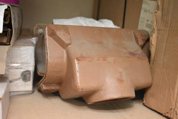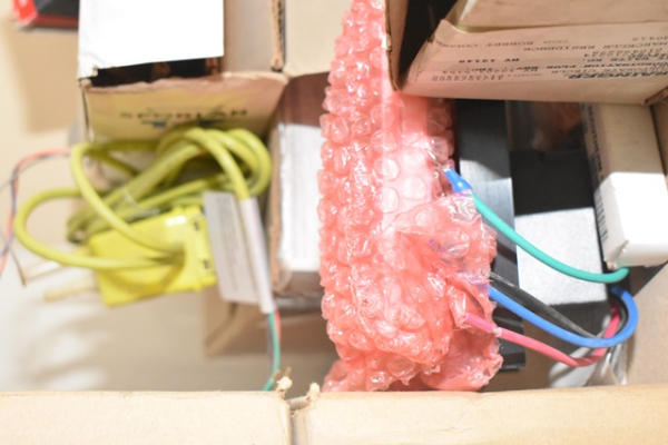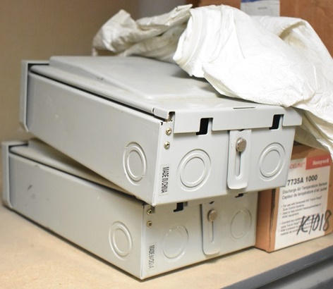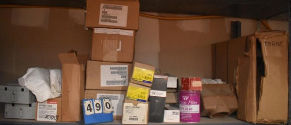 Shelf contents consisting of electrical panels, pressure switches, fan controllers, suction filter