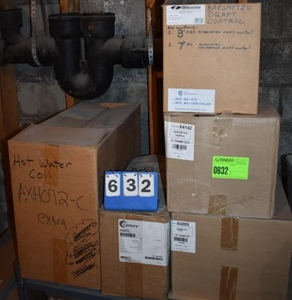 Lot consisting of barometric draft controls, 3 HP electric motor, hot water coil