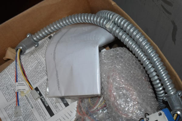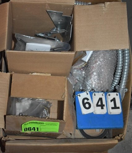 Box lot consisting of assorted electrical supplies, natural to LP gas conversion kits (White Rogers), etc.