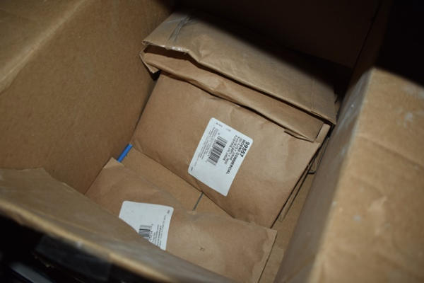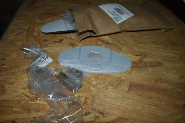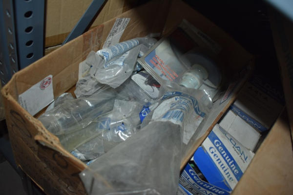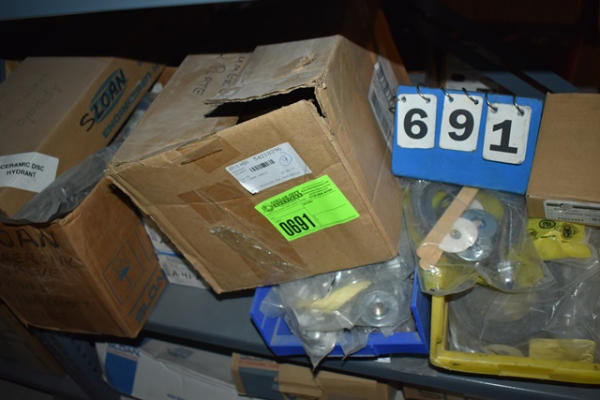 Shelf lot of gaskets, nuts, Sloan Commercial Valve parts, etc.