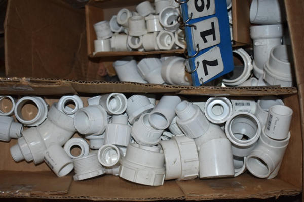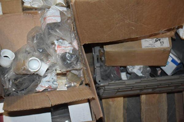 Pallet of mostly CPVC fittings, metal bracketry, metal pipe hangers