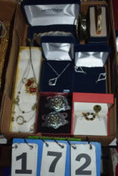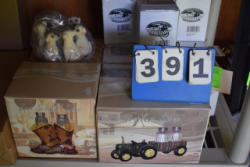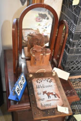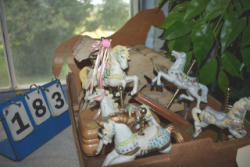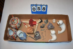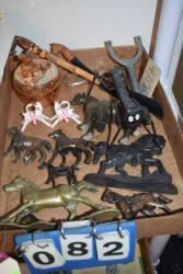 Box lot of knick knacks including horse and carriages in plastic and ceramic