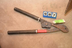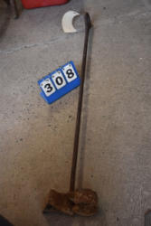 #1530 - Lot of 3 10" large cast iron hooks, 1 5" hook, 1 4" hook and 1 old cow bell