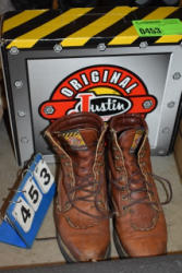 Tote lot of shipping and fly boots, Baker fly boots, red shipper, 2 of 2 blue quilt, etc.