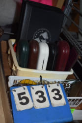 #1531 - Box lot of weights, roadster boots, ankle weights, etc.