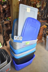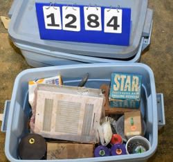 #1500 - Lot of 2 totes consisting of assorted equine care and products and bandages
