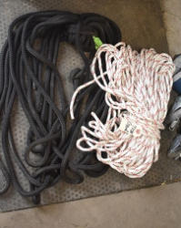 Box lot of braided rope with hook
