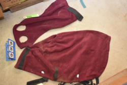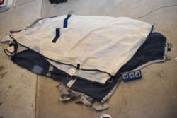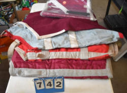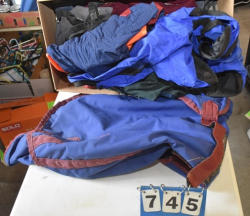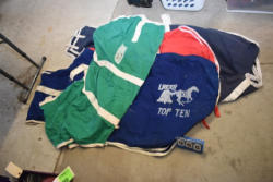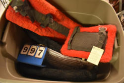 Full box of misc. used leg wraps and saddle quilts