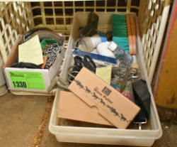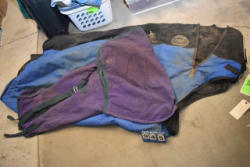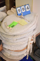 #1494 - Full box of misc. used leg wraps and saddle quilts