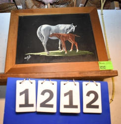 #6 - Horse with bull painting, 34" x 28" framed
