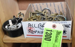 Box lot of assorted straps, blanket repair pieces
