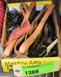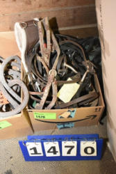#1495 - Box lot of assorted straps, blanket repair pieces