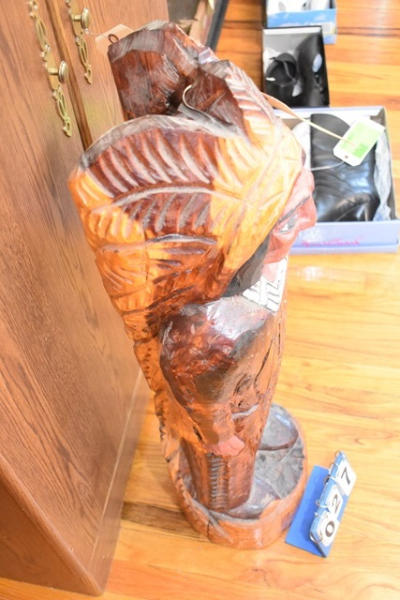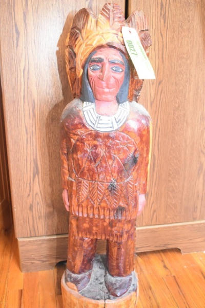Native American statue hand carved in Pennsylvania by a now deceased artist, 36" tall