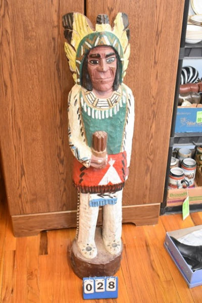Native American statue hand carved in Pennsylvania by a now deceased artist, 48" tall