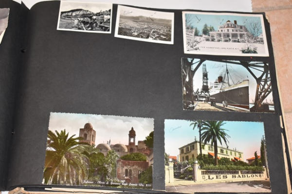 Vintage photo album with vintage photos and vintage post cards from across the world