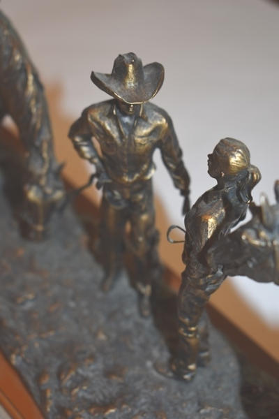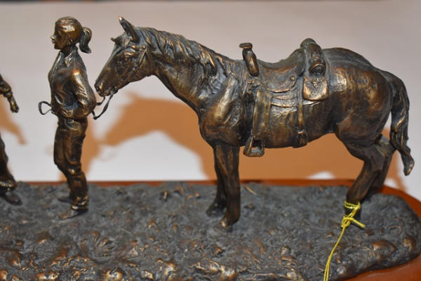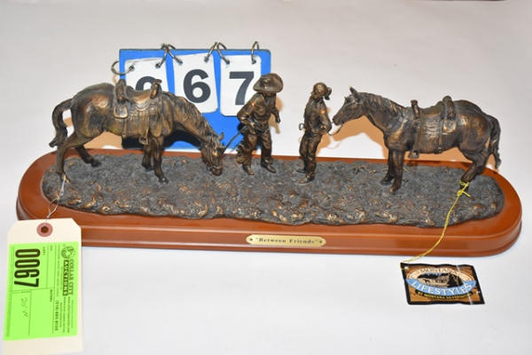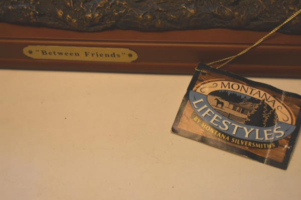 Montana Silversmith "Between Friends" statue on wood, 20" wide